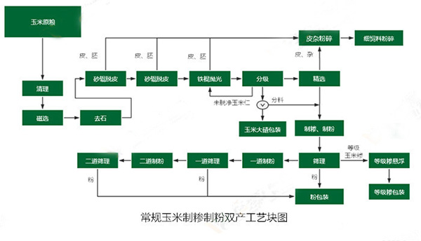 2、玉米干法成套加工工藝,物料加工過程無需接觸水,加工更衛(wèi)生,更簡潔、更省力;